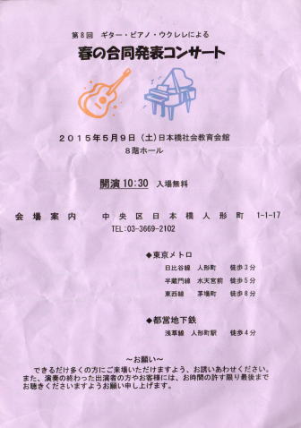 会場の日本橋社会教育会館は、何度通っても行き方が覚えられなくて、 いつもプログラムの地図が頼りなのだが、今回青島さんは地図を入れ忘れたようで、 ぼくは前回のプログラムを探し出して持って行った。